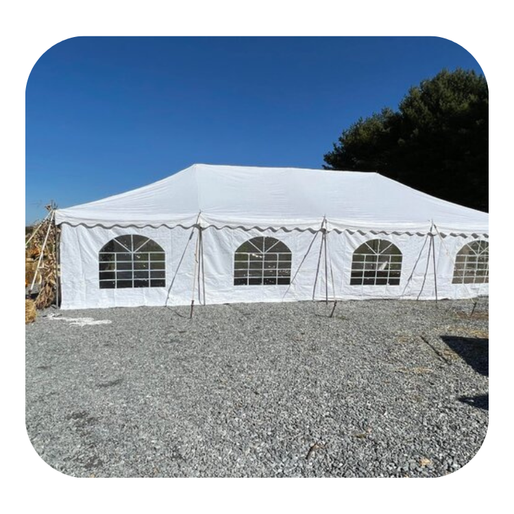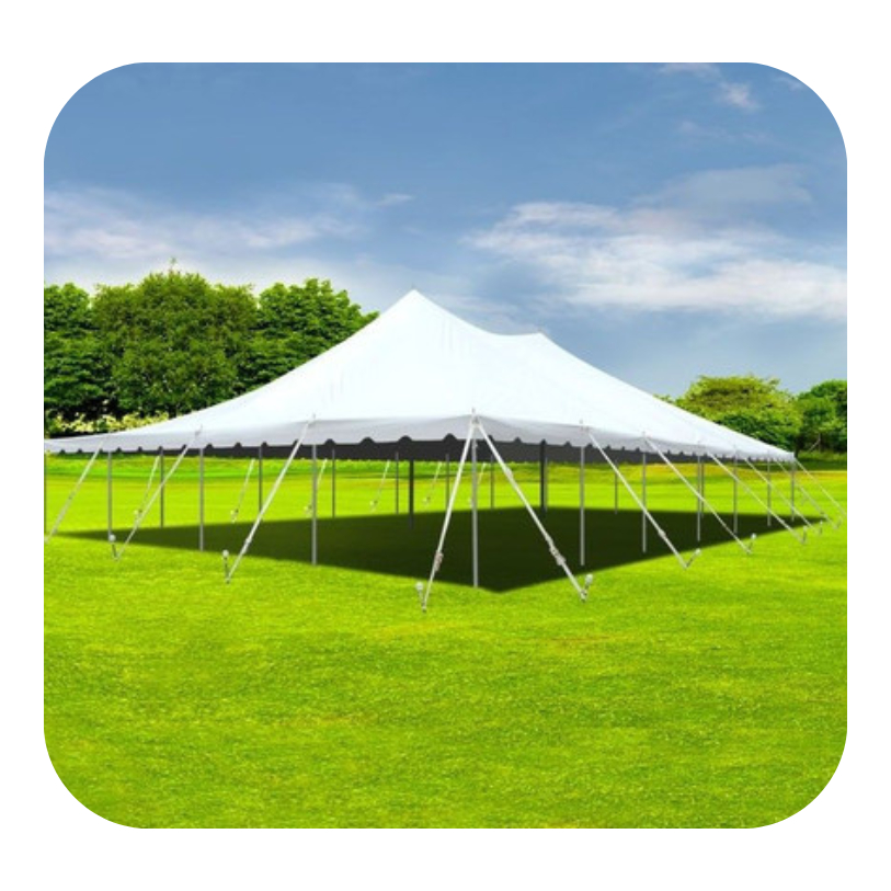 Peg and pole tents are among the most popular and cost-effective tents for sale on the market. These classic pole tents are supported by a combination of pegs, side poles, and center poles, securely anchored into soft surfaces like grass or soil. Built from durable canvas or heavy-duty PVC, these tents are known for their ease of assembly and ability to withstand various weather conditions. Whether you’re planning a pole tent wedding, hosting a festival, or need a tent for storage, peg and pole marquees for sale from Royal Tent deliver exceptional value and versatility.